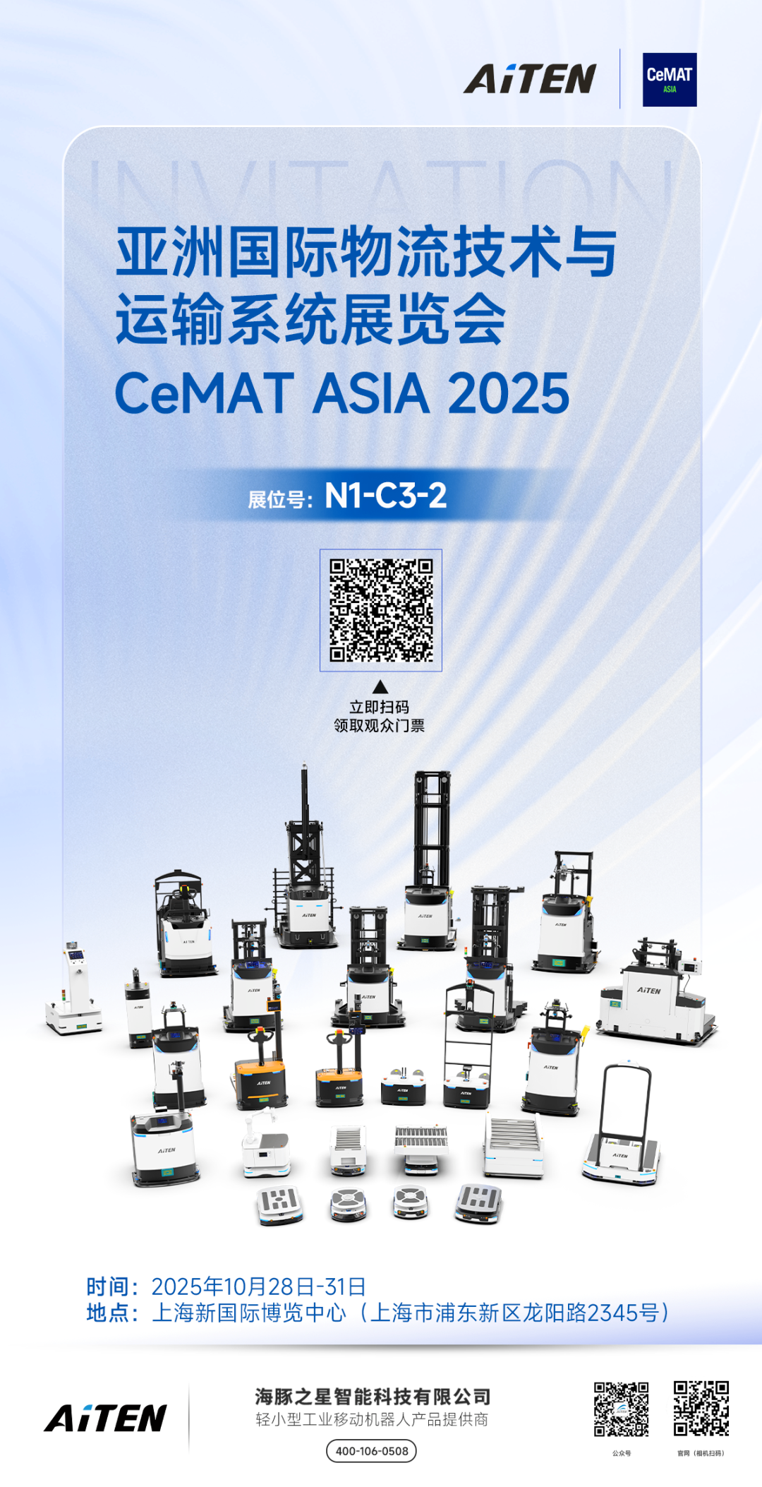 亚洲物流科技盛会——CeMAT ASIA 2025 即将如期而至。我们谨代表 AiTENyabo鸭脖机器人,诚挚地邀请您莅临我们的展位,共同见证智能物料处理技术的创新力量,携手探索高效未来的无限可能。